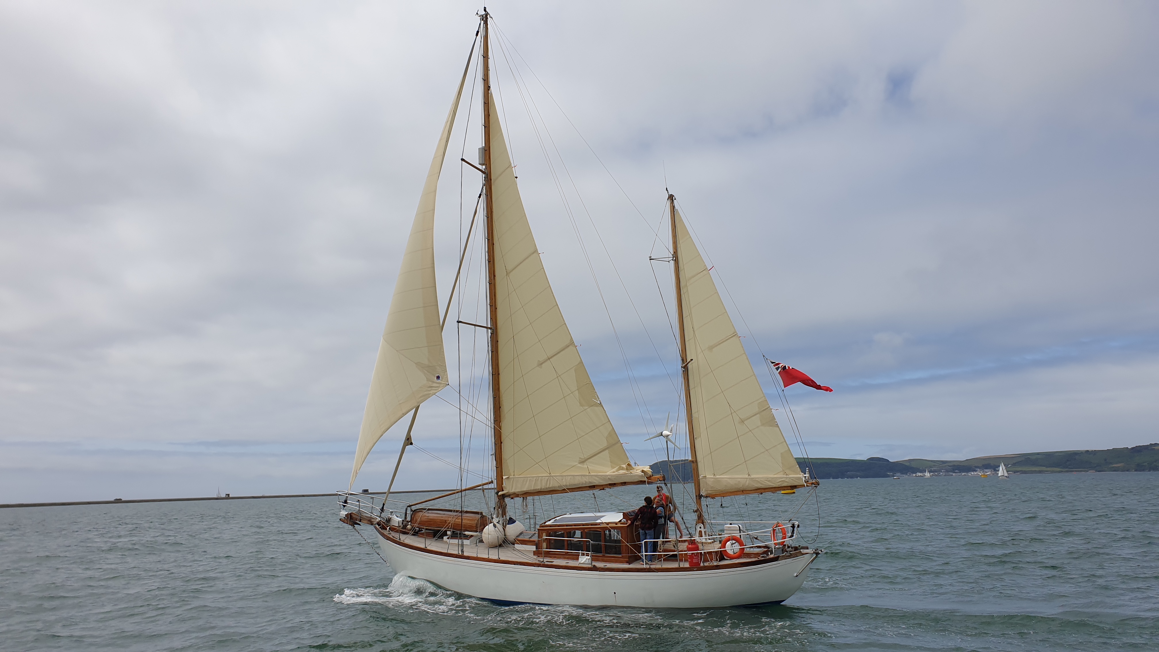 Wrecked in Ilfracombe in 1980, rescued by Tim Newman, rebuilt in Exeter 1980 to 1986. Sailed with family down Atlantic coast. In 2002, while preparing for a trans-Atlantic journey to the Caribbean, she was holed when she fell over, drying tied against a stone key. Repaired by Chis Rees. Bought by Sarah & Granby Patrick in March 2022.