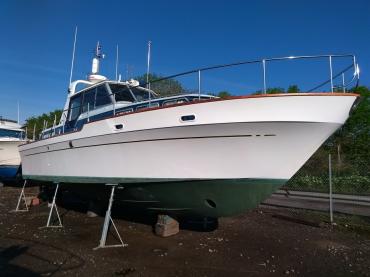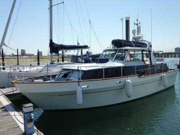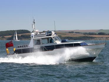 DRONE is a Ranger 36 Class motor yacht, built in 1973 by Northshore Yachts LTD of Itchenor, West Sussex. The Ranger 36, designed by Carey Golesworthy, was an innovative motor cruiser known for its blend of robust, offshore capabilities and comfortable, stylish design. Its primary innovations centred on its distinct centred wheelhouse layout, semi-displacement hull, and quality GRP construction, which created a safe and spacious vessel. 26 Ranger 36 yachts were built between 1969 and 1982, each powered with twin diesel Ford Sabre engines.